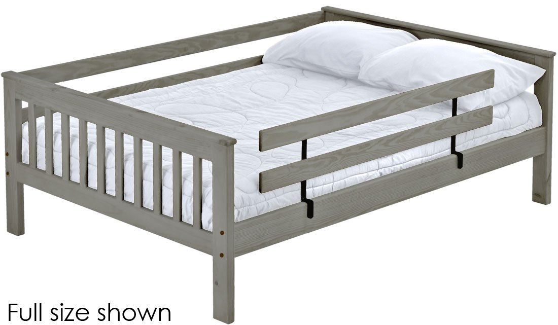 A full length rear guardrail and a removable front guardrail are included. Options include extra-long for big kids.