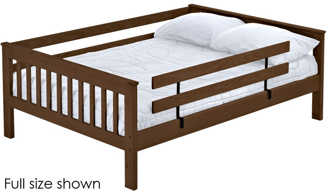 A full length rear guardrail and a removable front guardrail are included. Options include extra-long for big kids.