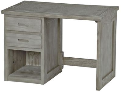 A compact desk with 2 drawers and an open shelf to keep everything organized. Consider adding a lacquer finish on the top for increased moisture resistance and easier cleanup of spills. Add a desk shelf for more storage.Read More