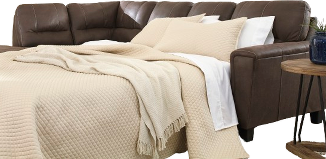 Includes 2 pieces: left-arm facing corner chaise and right-arm facing sofa sleeper
