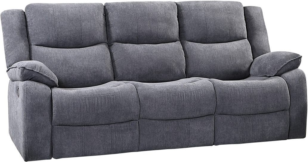 Sink into luxury with this incredibly comfortable reclining sofa. Plush, overstuffed cushioning and beautiful, soft, grey chenille fabric offer a sitting experience you will never want to escape from. Sofa includes dropdown tray and 2 cup holders.Read More