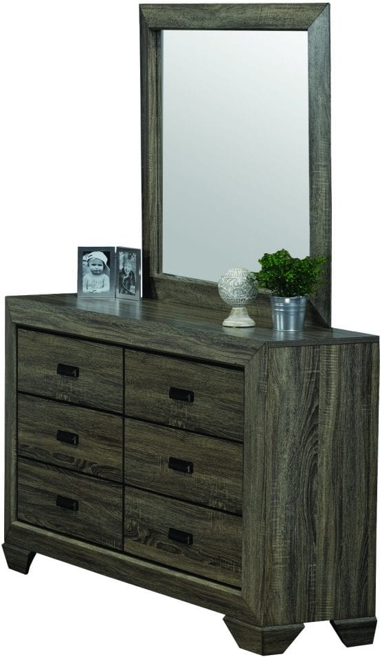 A true masterpiece of contemporary design with a modern Distressed Grey finish, the Titus Furniture Jenna Dresser features 6 hardware-less drawers and a stylish mirror. Matching bedroom furniture available for complete Jenna collection.Read More
