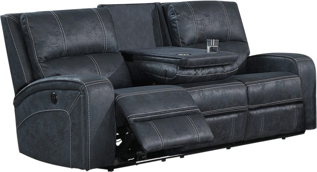 Be prepared for the ultimate in relaxation. This power recliner sofa includes multifunctional reclining features, memory foam and full back support for a comfortable rest and vertical contrast stitching. Sofa includes drop-down centre and is draped in beautiful midnight blue air suede fabric.Read More